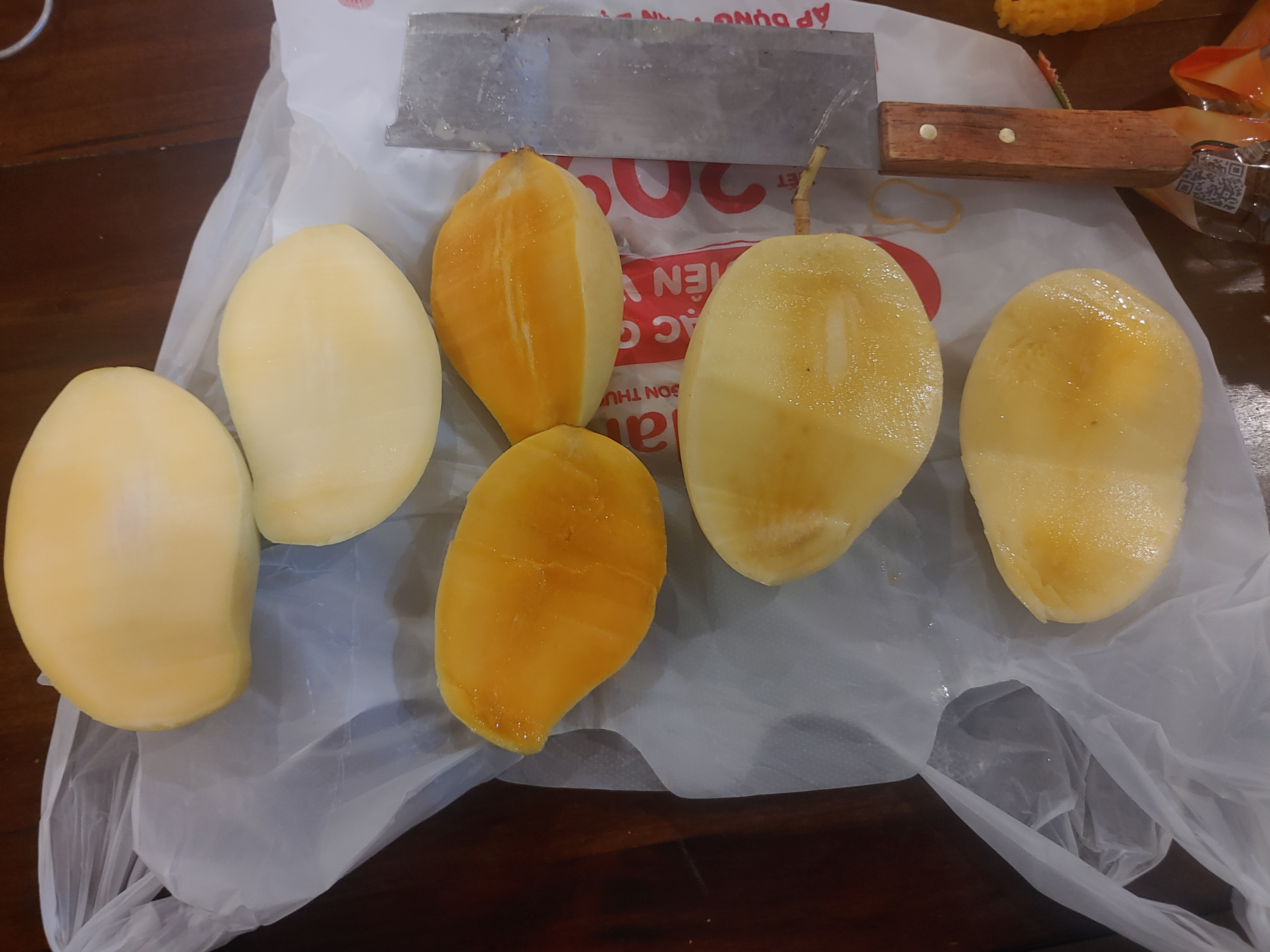 애플망고처럼 주먹보다 크고 아예 생김새부터 동그란 것은 안에 씨앗의 생긴 것도 다르고 맛도 훨씬 새콤달콤하면서 과육의 식감도 좋았어요.
